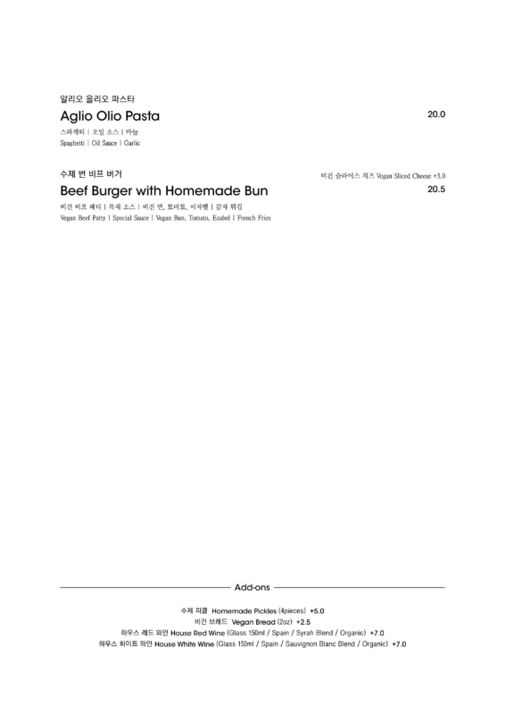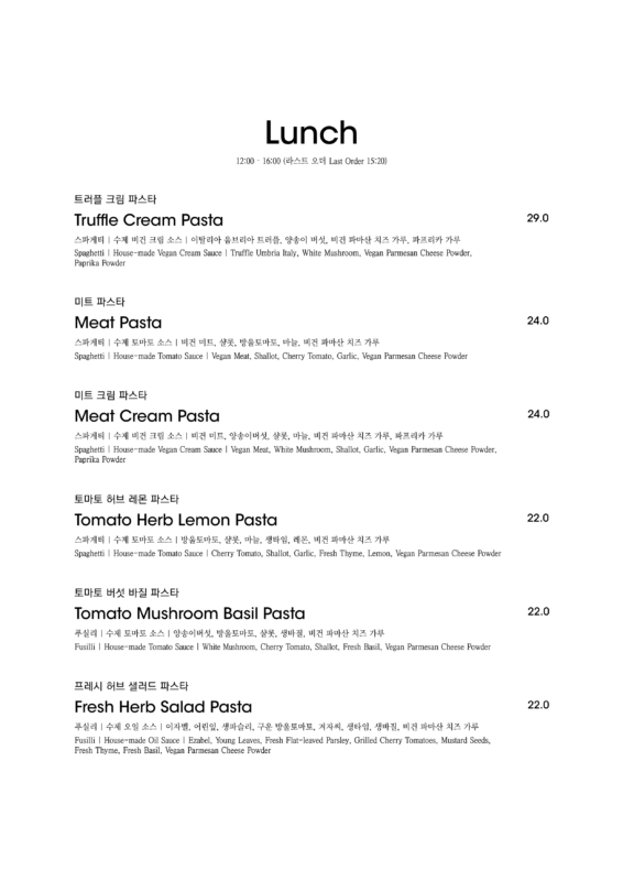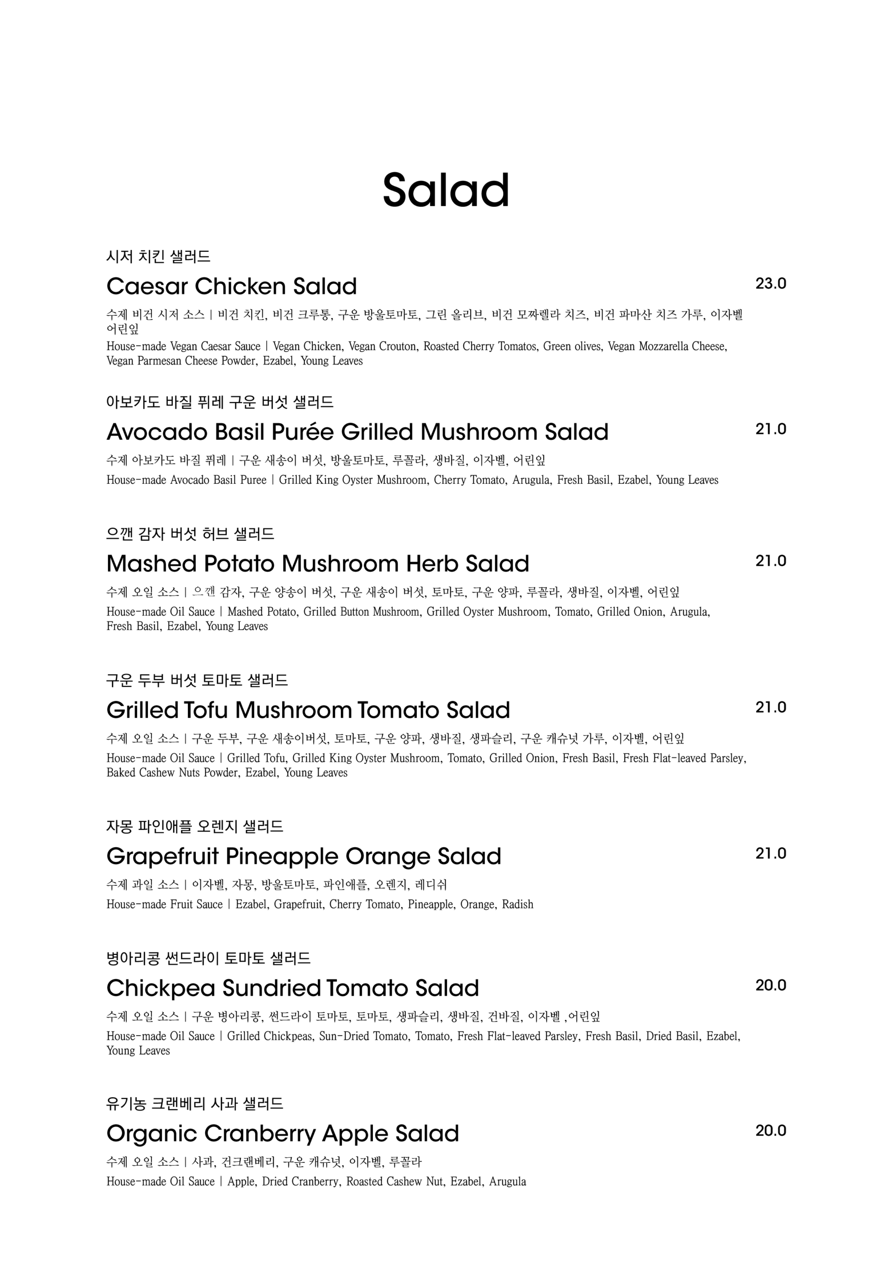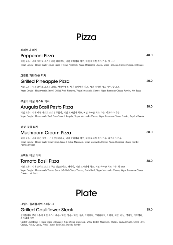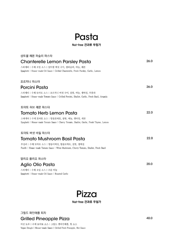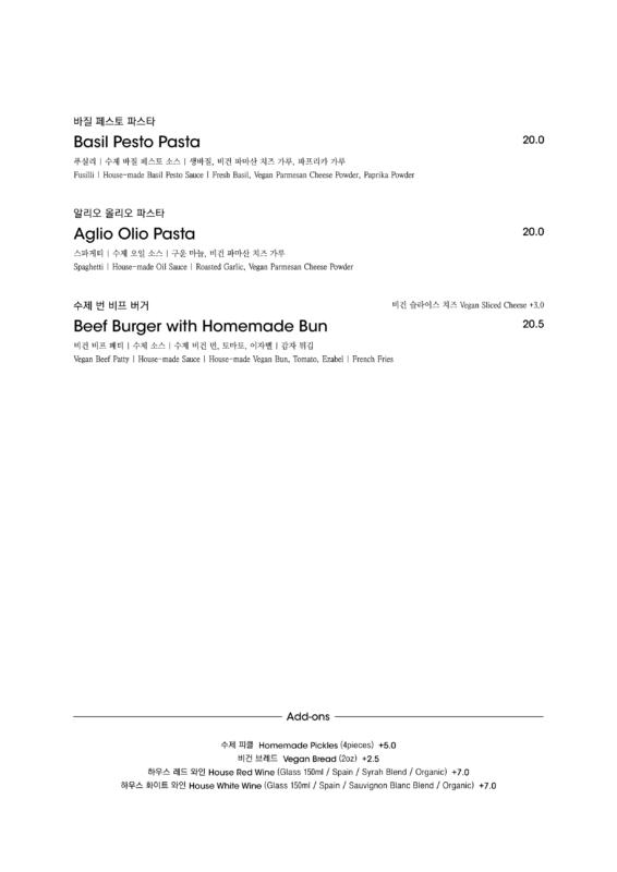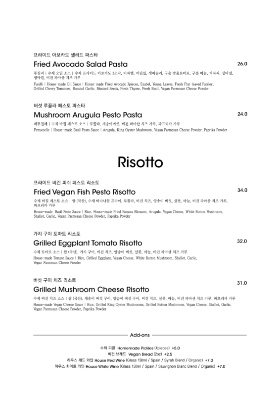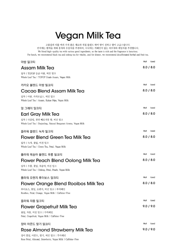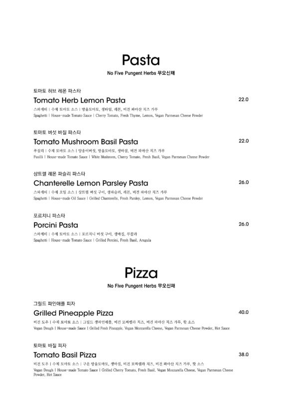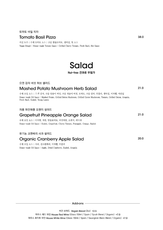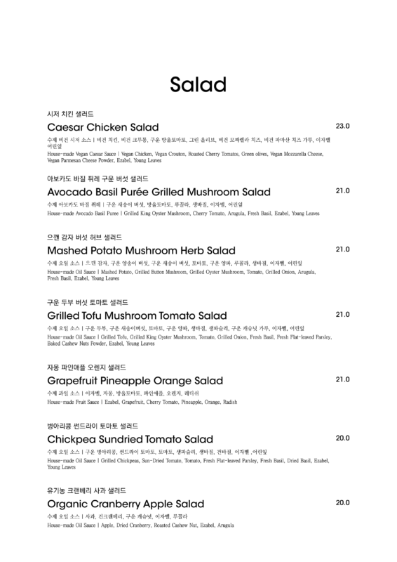 알림: 본 메뉴판의 각 메뉴의 재료는 참고를 위한 주재료 위주의 일부 표기입니다.