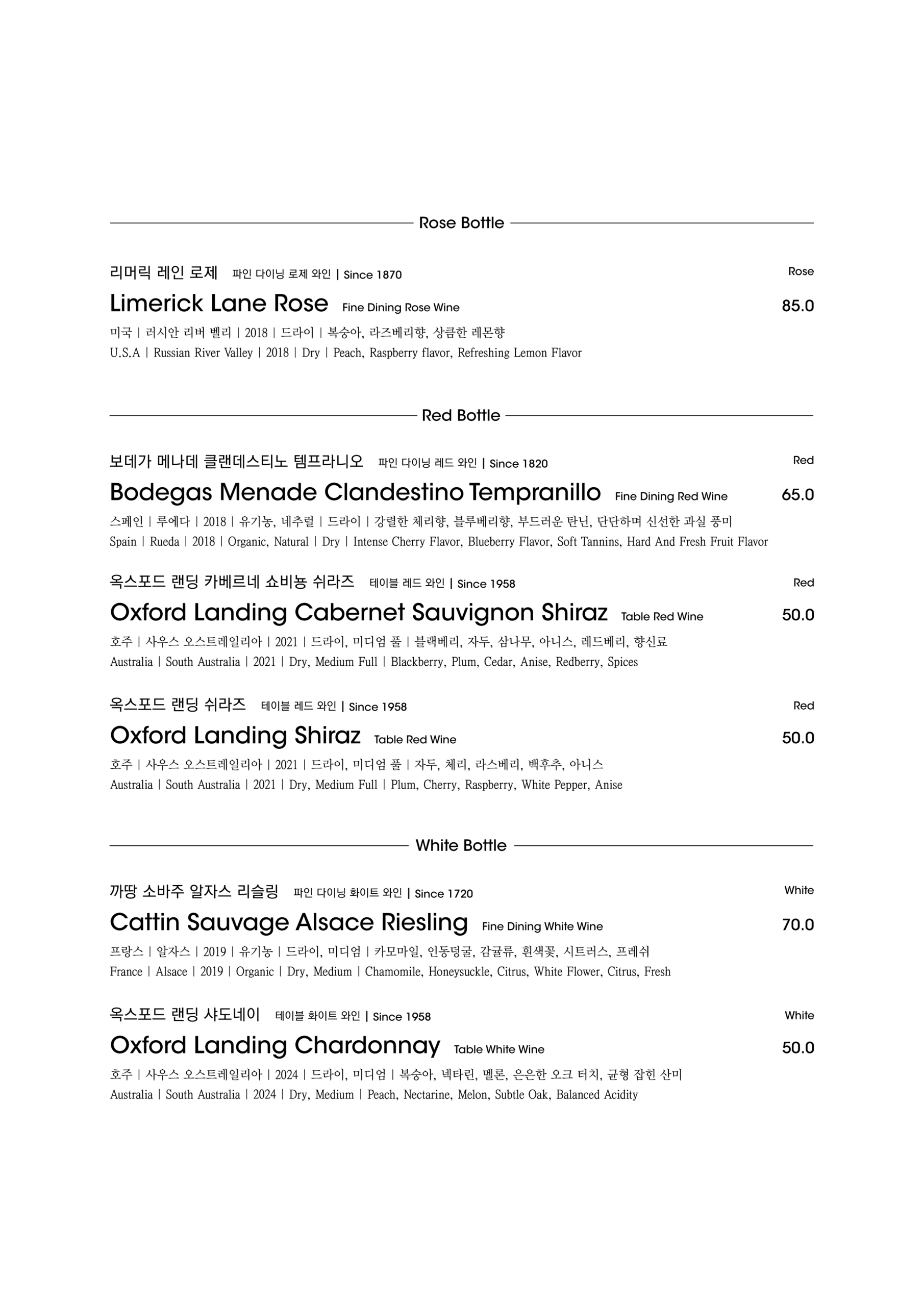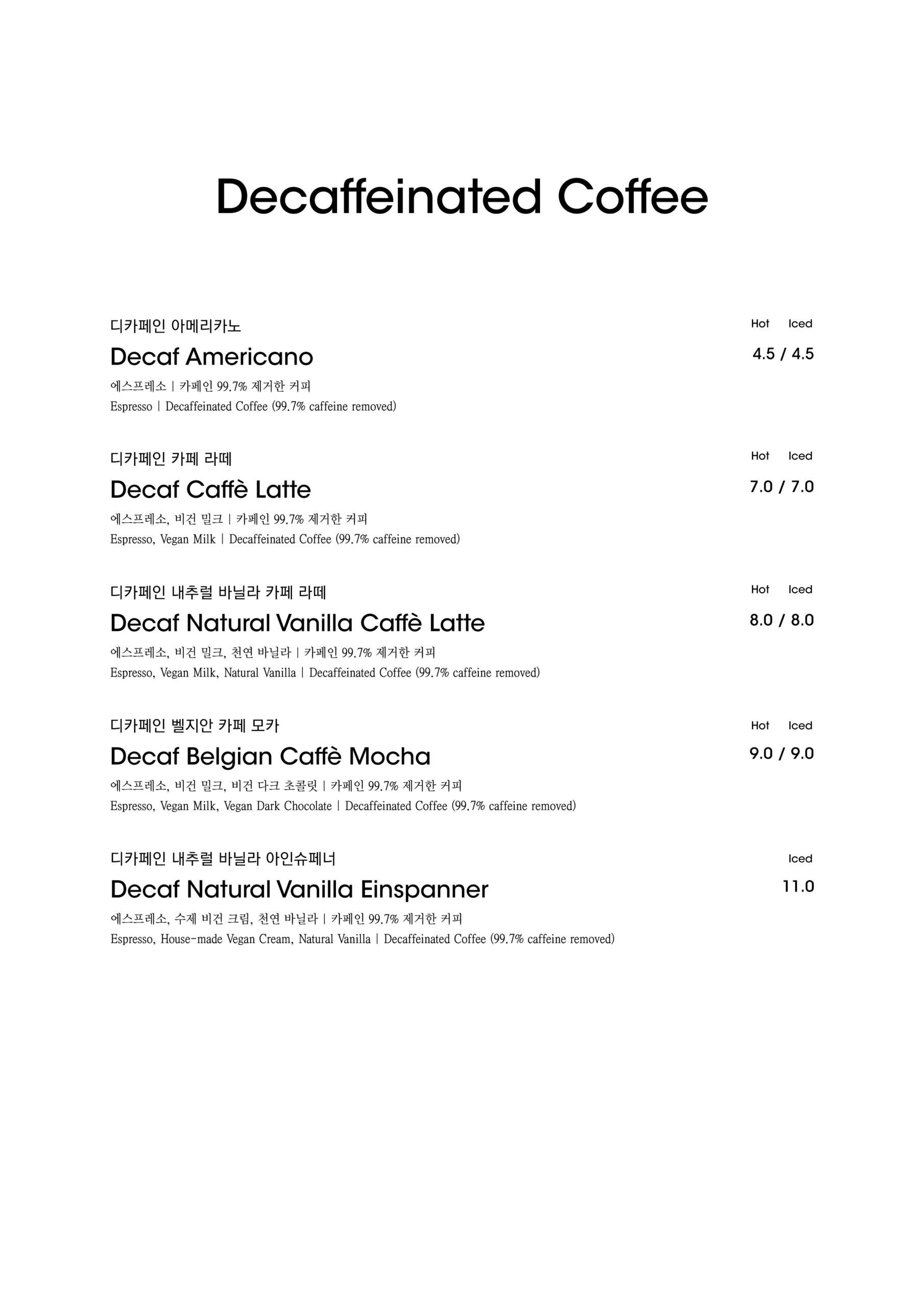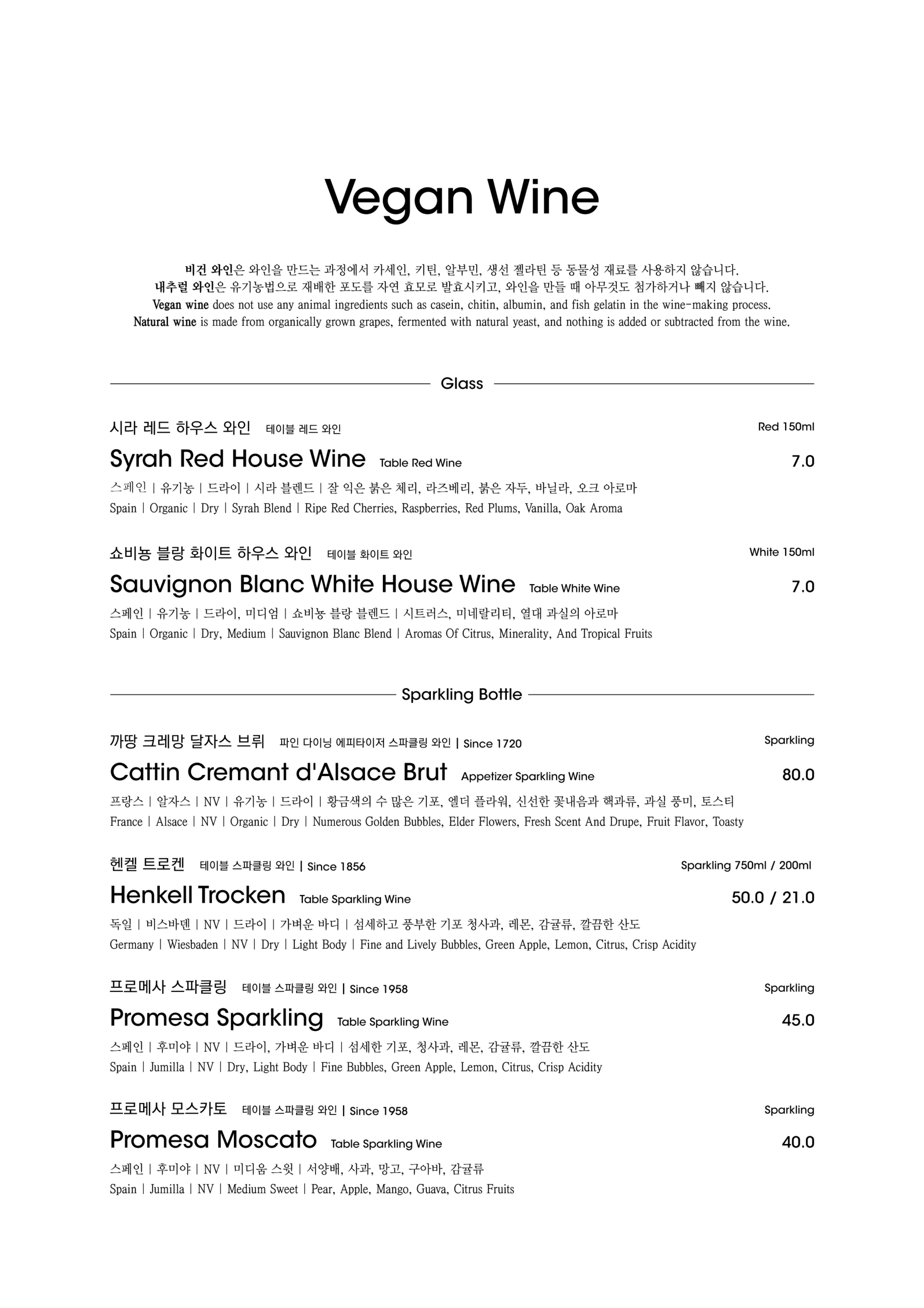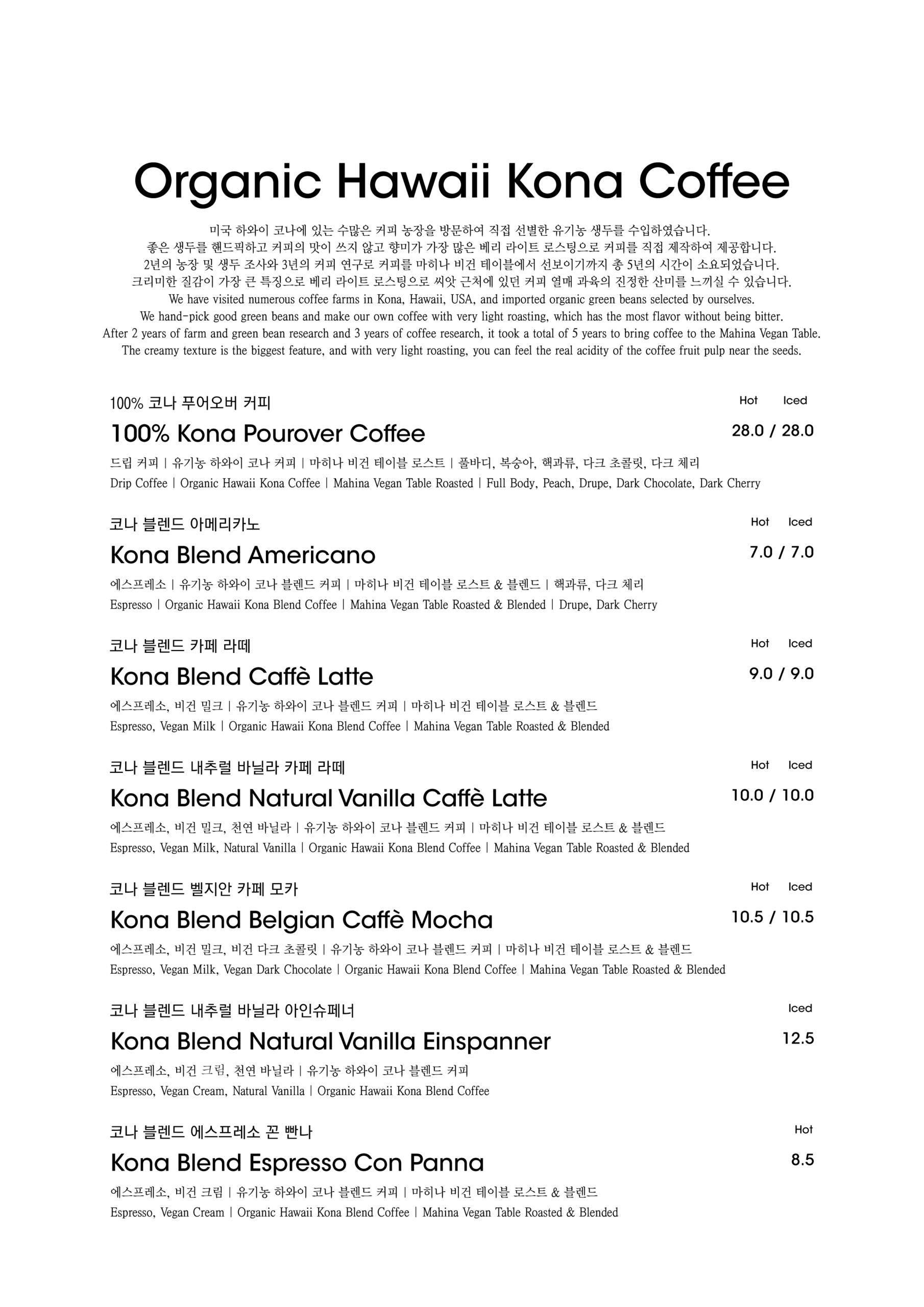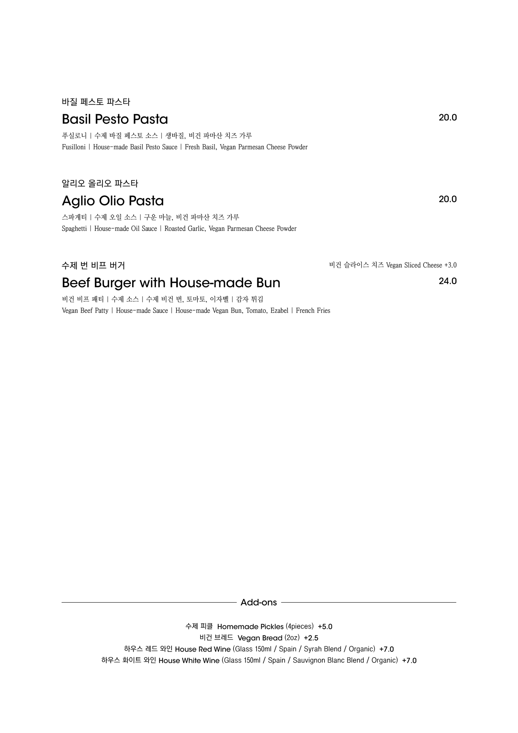 알림: 본 메뉴판의 각 메뉴의 재료는 참고를 위한 주재료 위주의 일부 표기입니다.